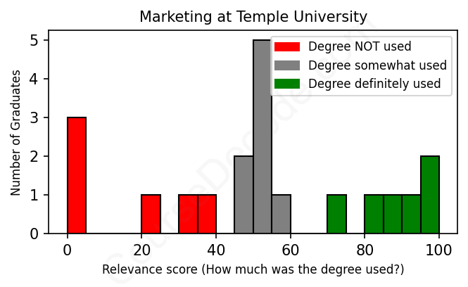 First, some facts. Of the Marketing graduates from Temple University we've analyzed , here's how many have used (or NOT used) their degree in their career: