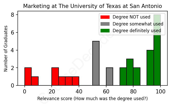 First, some facts. Of the Marketing graduates from The University of Texas at San Antonio we've analyzed , here's how many have used (or NOT used) their degree in their career: