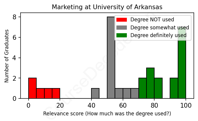 First, some facts. Of the Marketing graduates from University of Arkansas we've analyzed , here's how many have used (or NOT used) their degree in their career: