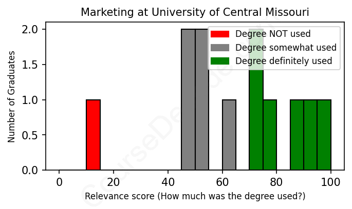 First, some facts. Of the Marketing graduates from University of Central Missouri we've analyzed , here's how many have used (or NOT used) their degree in their career: