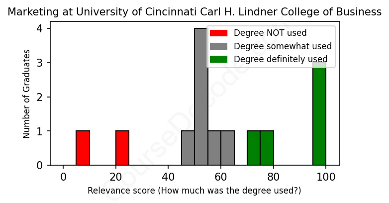 First, some facts. Of the Marketing graduates from University of Cincinnati Carl H. Lindner College of Business we've analyzed , here's how many have used (or NOT used) their degree in their career: