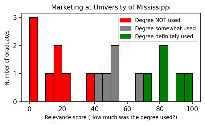 First, some facts. Of the Marketing graduates from University of Mississippi we've analyzed , here's how many have used (or NOT used) their degree in their career: