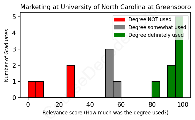 First, some facts. Of the Marketing graduates from University of North Carolina at Greensboro we've analyzed , here's how many have used (or NOT used) their degree in their career: