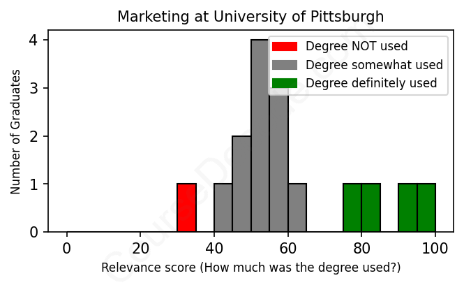 First, some facts. Of the Marketing graduates from University of Pittsburgh we've analyzed , here's how many have used (or NOT used) their degree in their career: