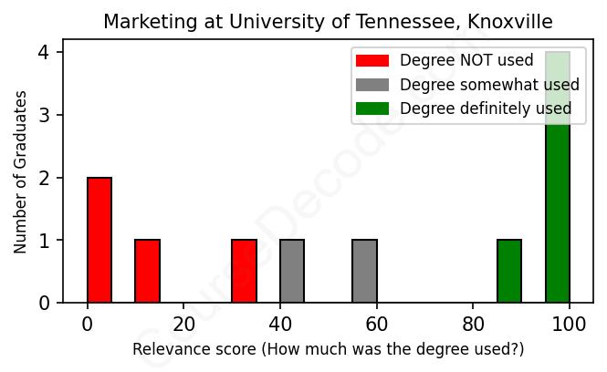 First, some facts. Of the Marketing graduates from University of Tennessee, Knoxville we've analyzed , here's how many have used (or NOT used) their degree in their career:
