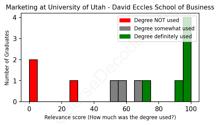 First, some facts. Of the Marketing graduates from University of Utah - David Eccles School of Business we've analyzed , here's how many have used (or NOT used) their degree in their career: