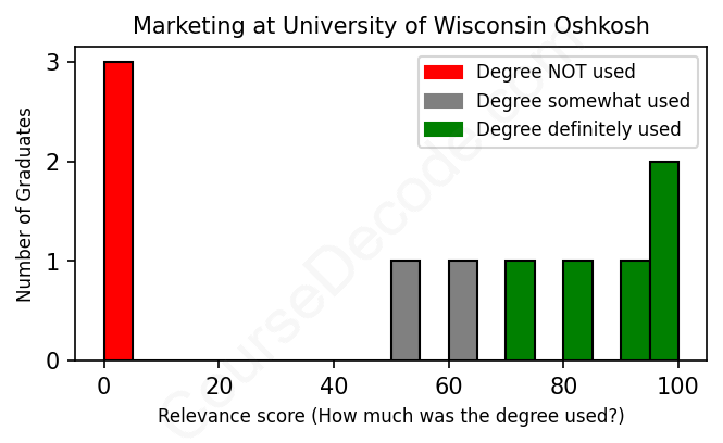 First, some facts. Of the Marketing graduates from University of Wisconsin Oshkosh we've analyzed , here's how many have used (or NOT used) their degree in their career: