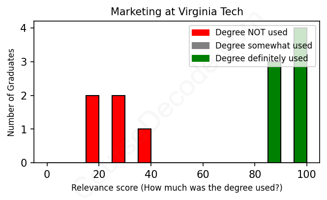 First, some facts. Of the Marketing graduates from Virginia Tech we've analyzed , here's how many have used (or NOT used) their degree in their career: