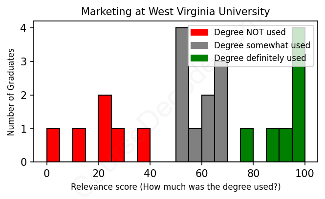 First, some facts. Of the Marketing graduates from West Virginia University we've analyzed , here's how many have used (or NOT used) their degree in their career: