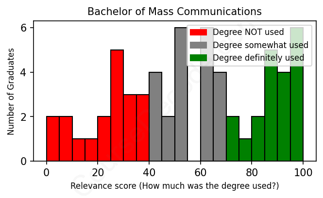 First, some facts. Of the Mass Communications graduates we've analyzed , here's how many have used (or NOT used) their degree in their career: