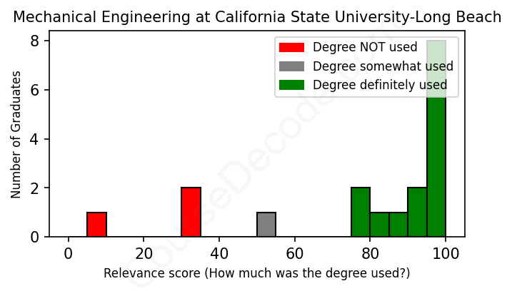 First, some facts. Of the Mechanical Engineering graduates from California State University-Long Beach we've analyzed , here's how many have used (or NOT used) their degree in their career: