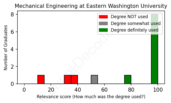 First, some facts. Of the Mechanical Engineering graduates from Eastern Washington University we've analyzed , here's how many have used (or NOT used) their degree in their career: