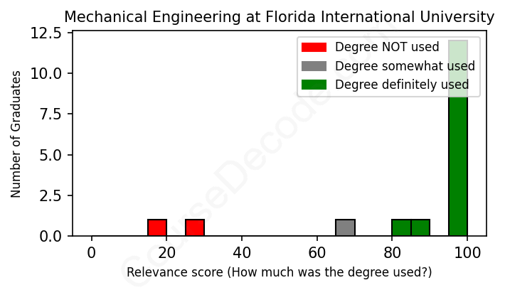 First, some facts. Of the Mechanical Engineering graduates from Florida International University we've analyzed , here's how many have used (or NOT used) their degree in their career: