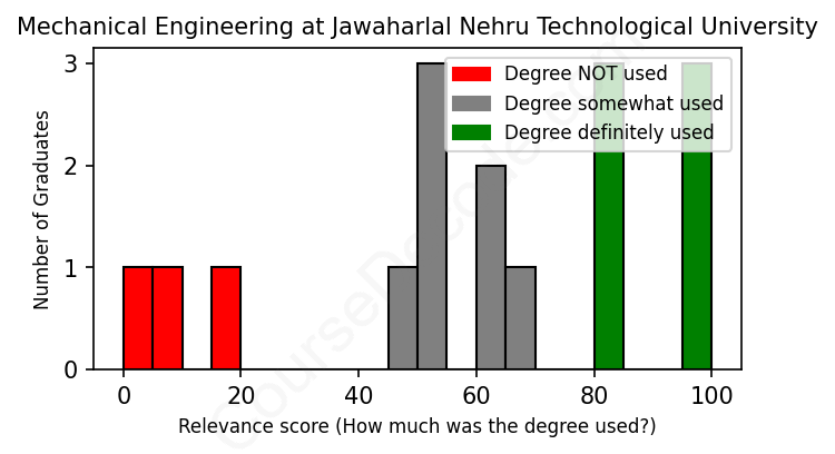 First, some facts. Of the Mechanical Engineering graduates from Jawaharlal Nehru Technological University we've analyzed , here's how many have used (or NOT used) their degree in their career: