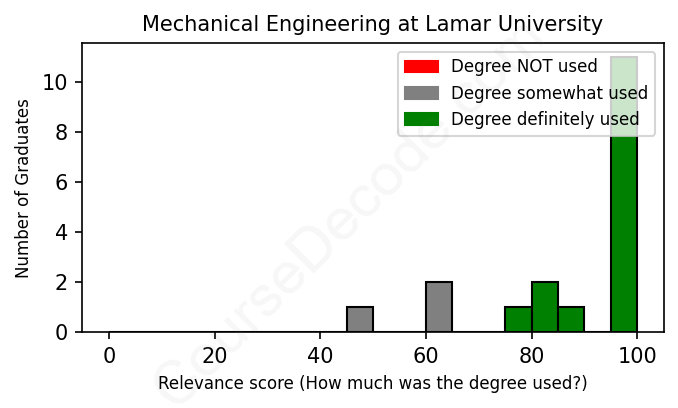 First, some facts. Of the Mechanical Engineering graduates from Lamar University we've analyzed , here's how many have used (or NOT used) their degree in their career: