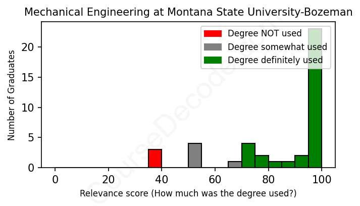 First, some facts. Of the Mechanical Engineering graduates from Montana State University-Bozeman we've analyzed , here's how many have used (or NOT used) their degree in their career: