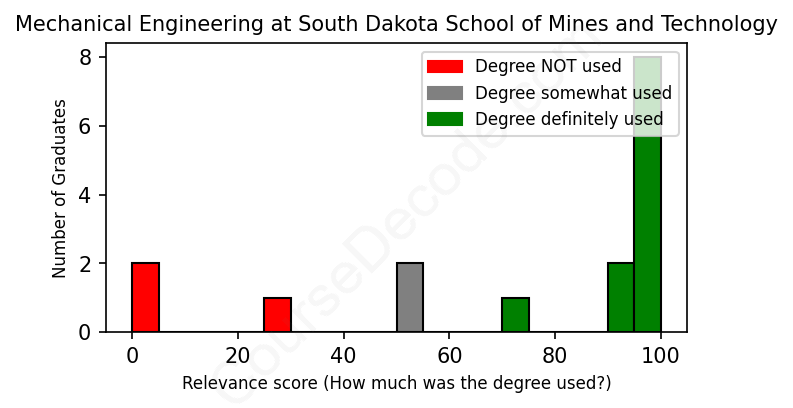 First, some facts. Of the Mechanical Engineering graduates from South Dakota School of Mines and Technology we've analyzed , here's how many have used (or NOT used) their degree in their career: