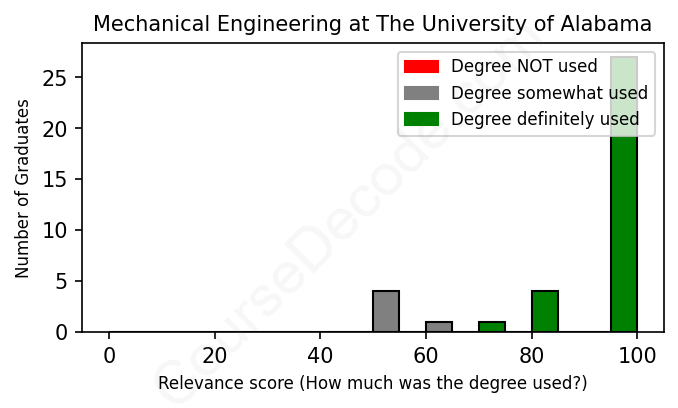 First, some facts. Of the Mechanical Engineering graduates from The University of Alabama we've analyzed , here's how many have used (or NOT used) their degree in their career: