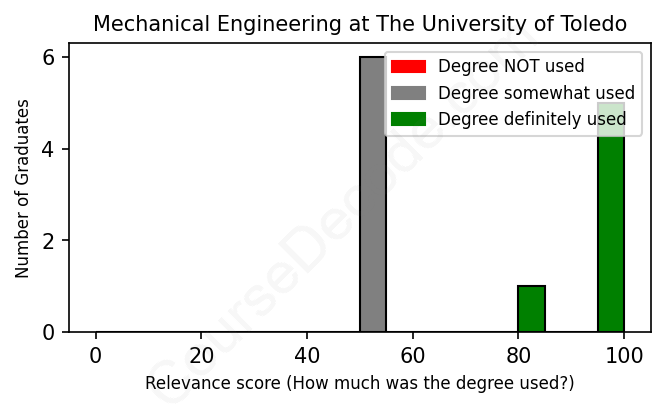 First, some facts. Of the Mechanical Engineering graduates from The University of Toledo we've analyzed , here's how many have used (or NOT used) their degree in their career: