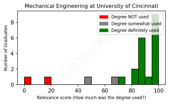 First, some facts. Of the Mechanical Engineering graduates from University of Cincinnati we've analyzed , here's how many have used (or NOT used) their degree in their career: