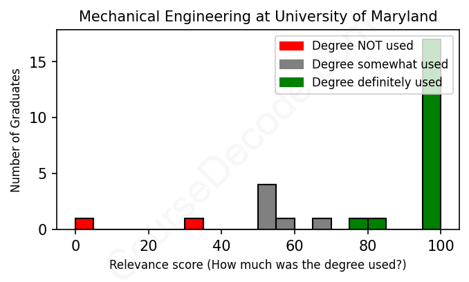 First, some facts. Of the Mechanical Engineering graduates from University of Maryland we've analyzed , here's how many have used (or NOT used) their degree in their career: