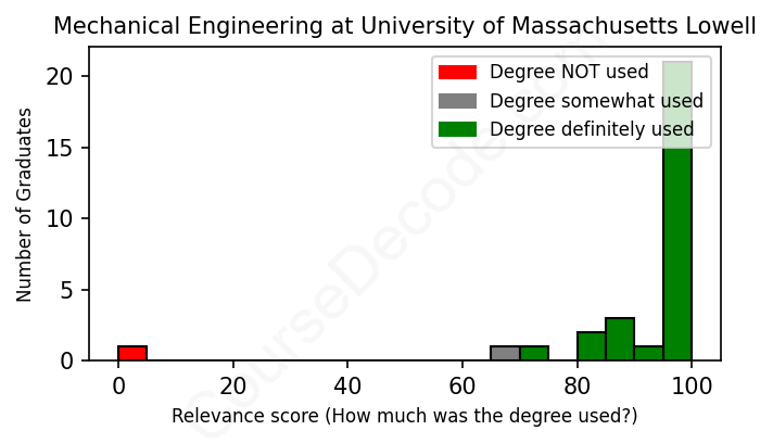 First, some facts. Of the Mechanical Engineering graduates from University of Massachusetts Lowell we've analyzed , here's how many have used (or NOT used) their degree in their career: