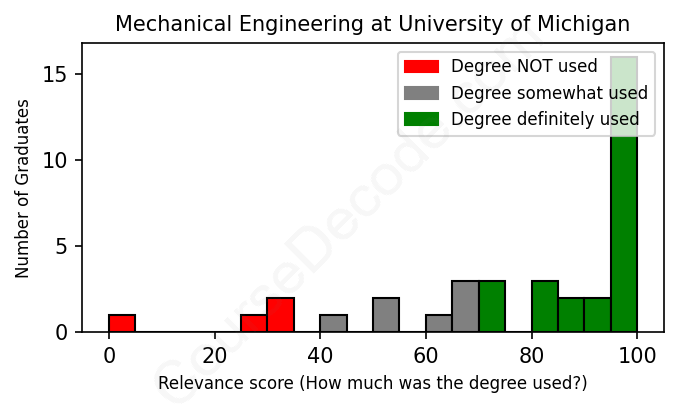 First, some facts. Of the Mechanical Engineering graduates from University of Michigan we've analyzed , here's how many have used (or NOT used) their degree in their career: