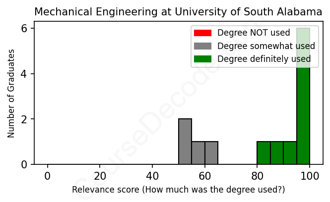First, some facts. Of the Mechanical Engineering graduates from University of South Alabama we've analyzed , here's how many have used (or NOT used) their degree in their career: