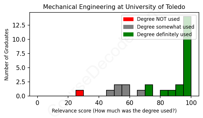 First, some facts. Of the Mechanical Engineering graduates from University of Toledo we've analyzed , here's how many have used (or NOT used) their degree in their career: