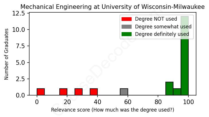 First, some facts. Of the Mechanical Engineering graduates from University of Wisconsin-Milwaukee we've analyzed , here's how many have used (or NOT used) their degree in their career: