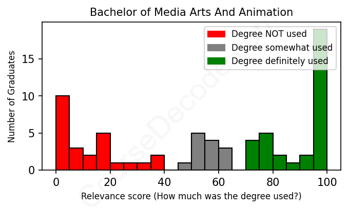 First, some facts. Of the Media Arts And Animation graduates we've analyzed , here's how many have used (or NOT used) their degree in their career: