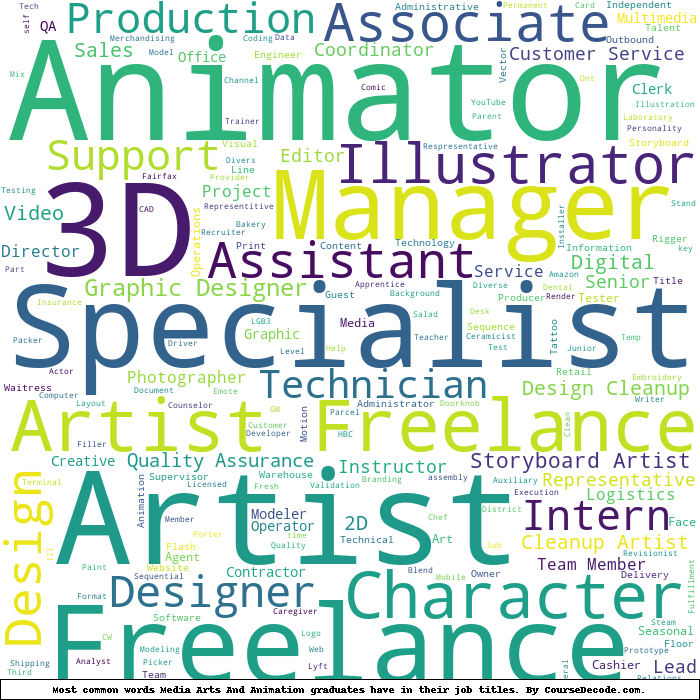 Here is a visual representation of the most common words in job titles for Media Arts And Animation graduates: