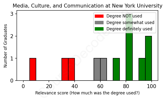 First, some facts. Of the Media, Culture, and Communication graduates from New York University we've analyzed , here's how many have used (or NOT used) their degree in their career: