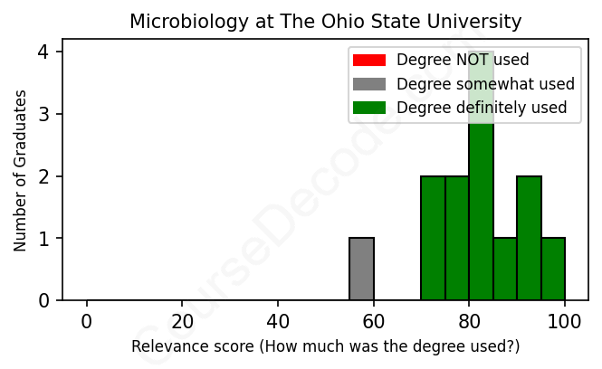 First, some facts. Of the Microbiology graduates from The Ohio State University we've analyzed , here's how many have used (or NOT used) their degree in their career: