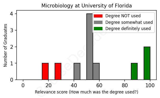 First, some facts. Of the Microbiology graduates from University of Florida we've analyzed , here's how many have used (or NOT used) their degree in their career: