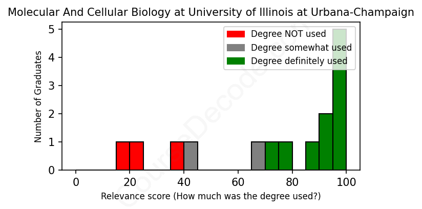 First, some facts. Of the Molecular And Cellular Biology graduates from University of Illinois at Urbana-Champaign we've analyzed , here's how many have used (or NOT used) their degree in their career: