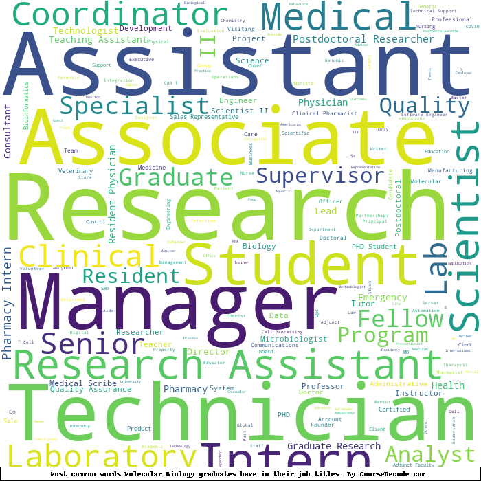 Here is a visual representation of the most common words in job titles for Molecular Biology graduates: