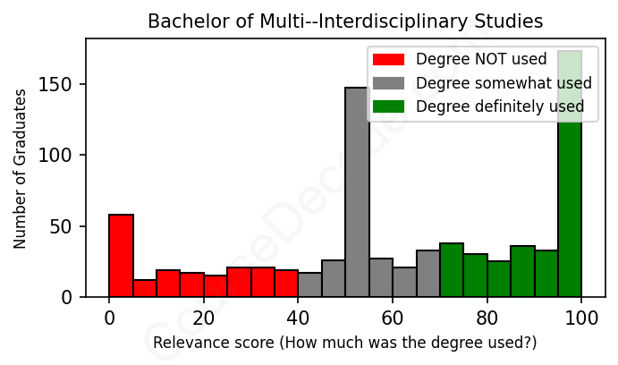 First, some facts. Of the Multi--Interdisciplinary Studies graduates we've analyzed , here's how many have used (or NOT used) their degree in their career: