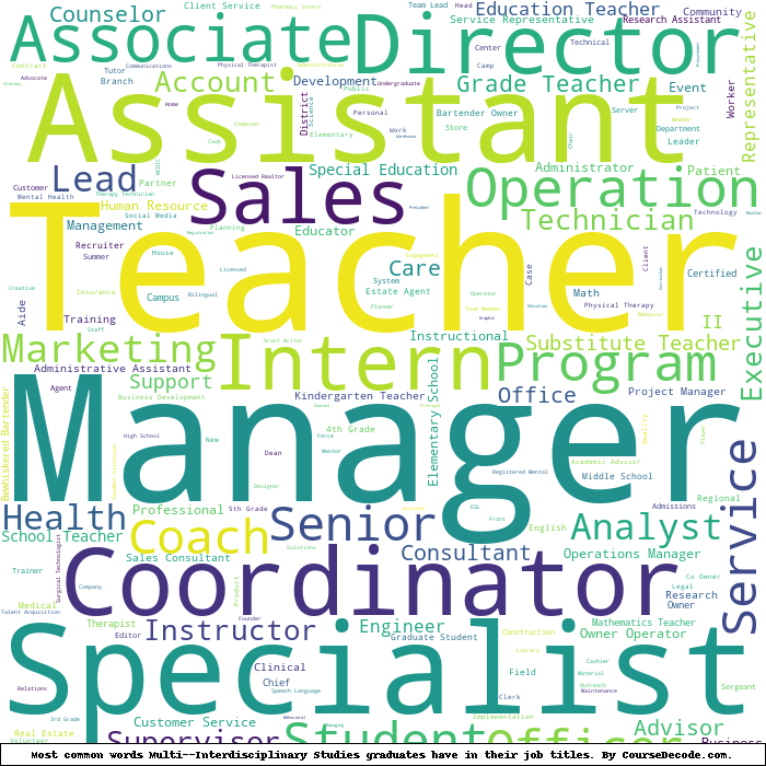 Here is a visual representation of the most common words in job titles for Multi--Interdisciplinary Studies graduates: