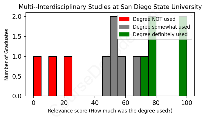 First, some facts. Of the Multi--Interdisciplinary Studies graduates from San Diego State University we've analyzed , here's how many have used (or NOT used) their degree in their career: