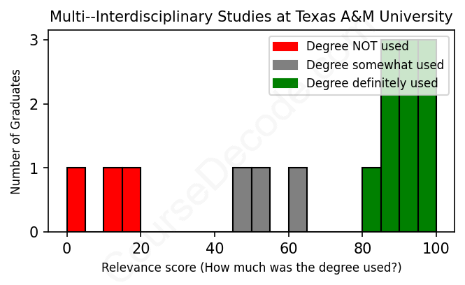 First, some facts. Of the Multi--Interdisciplinary Studies graduates from Texas A&M University we've analyzed , here's how many have used (or NOT used) their degree in their career: