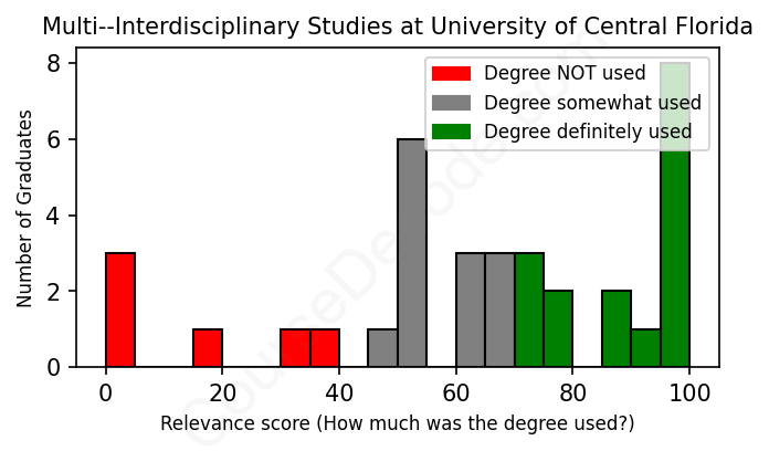 First, some facts. Of the Multi--Interdisciplinary Studies graduates from University of Central Florida we've analyzed , here's how many have used (or NOT used) their degree in their career: