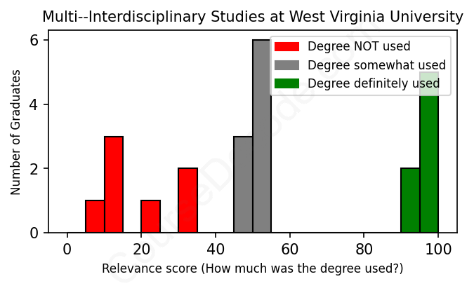 First, some facts. Of the Multi--Interdisciplinary Studies graduates from West Virginia University we've analyzed , here's how many have used (or NOT used) their degree in their career: