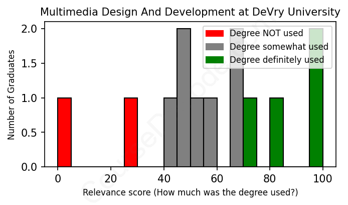 First, some facts. Of the Multimedia Design And Development graduates from DeVry University we've analyzed , here's how many have used (or NOT used) their degree in their career: