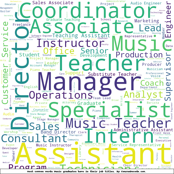 Here is a visual representation of the most common words in job titles for Music graduates:
