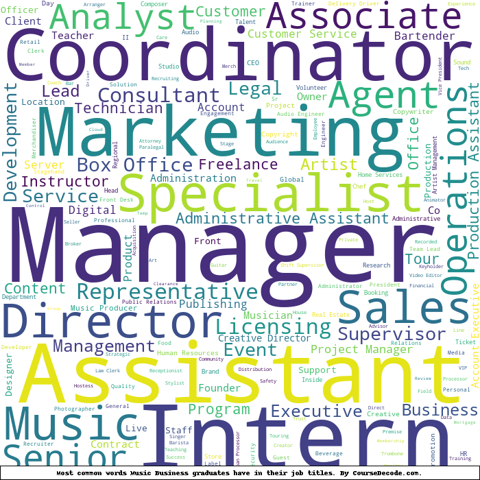 Here is a visual representation of the most common words in job titles for Music Business graduates: