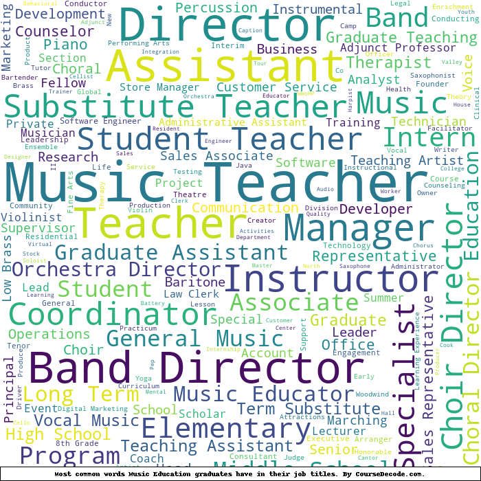 Here is a visual representation of the most common words in job titles for Music Education graduates: