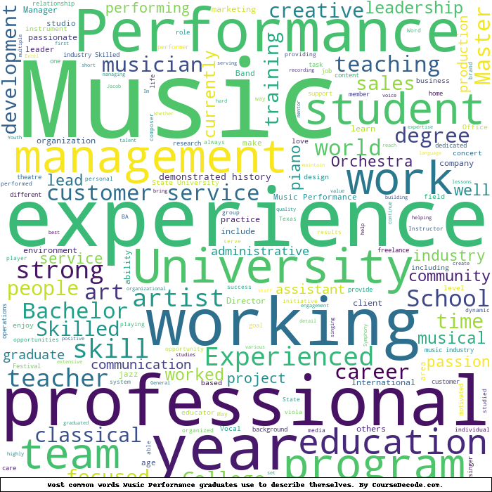 Here is a visual representation of the most common words in job titles for Music Performance graduates: