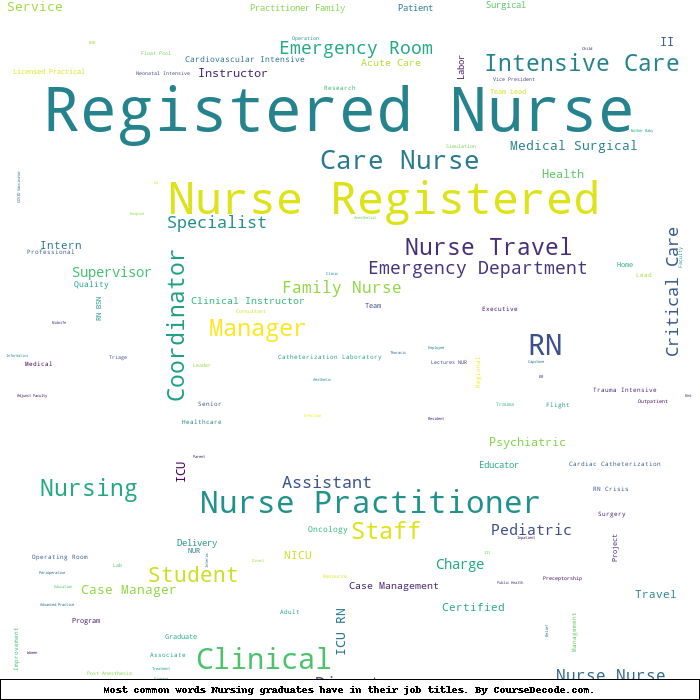 Here is a visual representation of the most common words in job titles for Nursing graduates: