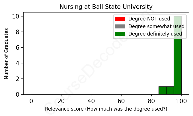 First, some facts. Of the Nursing graduates from Ball State University we've analyzed , here's how many have used (or NOT used) their degree in their career: